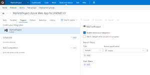 ビルドパイプラインは一度作成した後でも追加でサービスを足したり削ったりすることができます、更に実行トリガーを変更することで定時実行やビルド時間が凄いかかるようなプログラムの場合に夜間で行わせることができます。